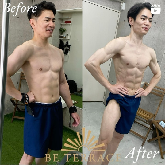 ※桴谷光兵さんのプログラム実施期間は2カ月間になります。※桴谷光兵さんの年齢・身長・体重・体脂肪は撮影時のものになります。※結果には個人差があり、効果を保証するものではありません。※適切な食事管理を行い、個人に合わせて目標数値を管理しています。